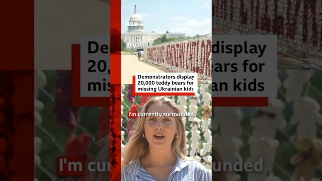 Demonstrators display 20,000 teddy bears in DC for missing Ukrainian children. #BBCNews