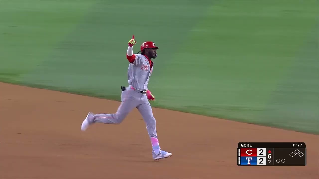 Elly De La Cruz gives the Cincinnati Reds the lead vs. the Texas Rangers on April 3, 2026.